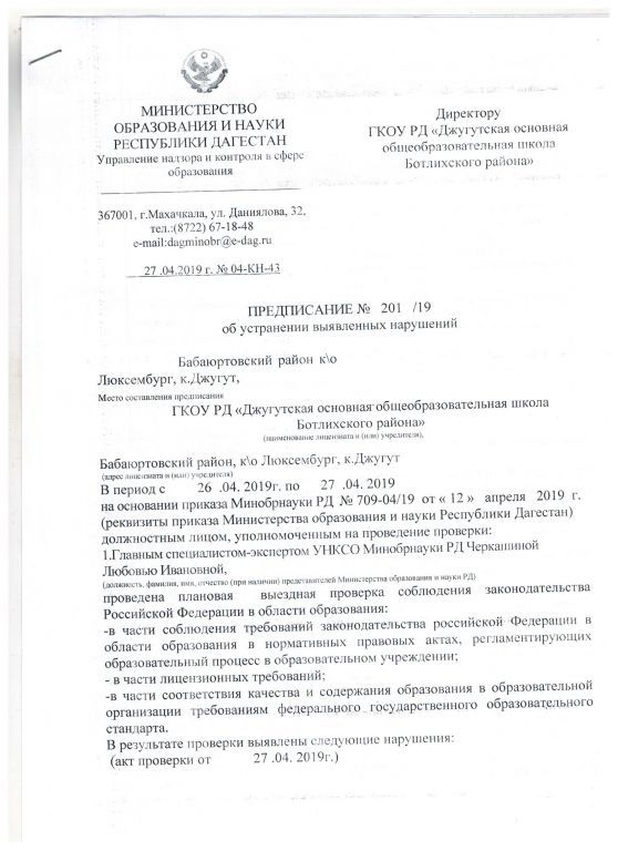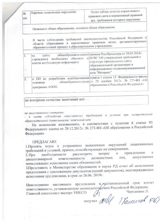 Предписания органов, осуществляющих государственный контроль (надзор) в сфере образования, отчеты об исполнении таких предписаний (при наличии)